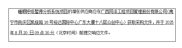 6.采購需求:睡眠呼吸暫停分析系統項目1項。具體內容詳見本競爭性磋商文件。