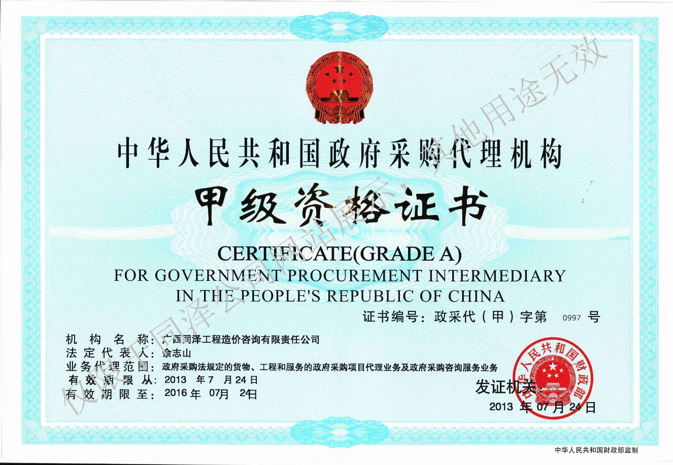 政府采購代理甲級資質