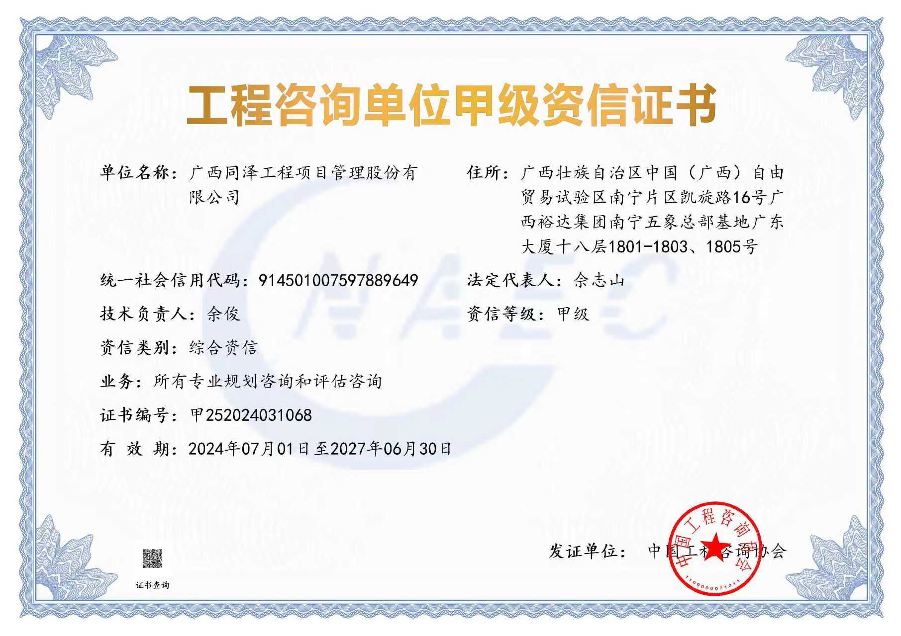 工程咨詢單位甲級資信